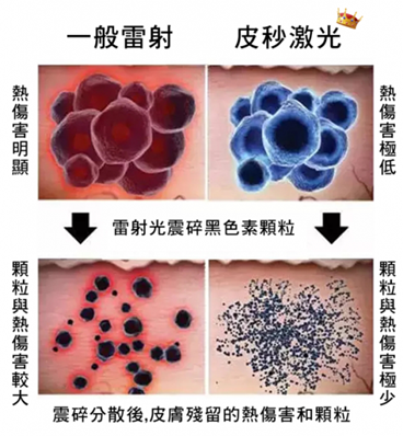 PICO皮秒激光可以喺極短時間釋放特定能量,深入淺、中、深層皮層,可以徹底瓦解色素,同時又可以刺激膠原蛋白產生,加快皮膚新陳代謝,將黑色素加速排出體外,任何種類色斑都有用。