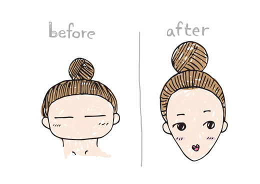 按摩後可用10分鐘之上小顏妝容。於日常化妝後,可用深一度顏色的粉底掃一掃腮骨與顴骨位,然後用珠光亮粉打亮鼻樑,已能有V面立體感,輕易塑造小顏尖下巴。