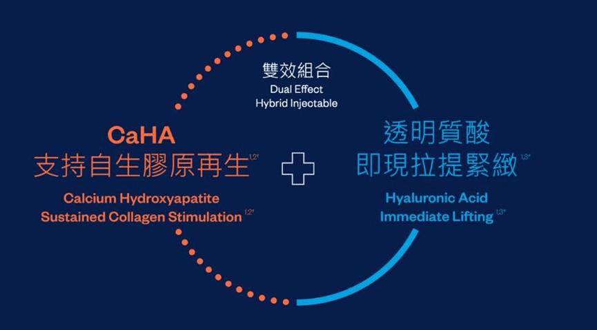 HamonyCA美神針結合2大抗老美顏成分:30%CAHA微球及70%透明質酸,當中嘅透明質酸可以即時緊緻及豐盈,幫助撫平皺紋細紋及保濕,而CaHA微球就可以持續喺皮膚刺激纖維母細胞,幫助持續增生膠原蛋白,令肌膚愈嚟愈緊緻,仲可以好顯著咁去除皺紋。