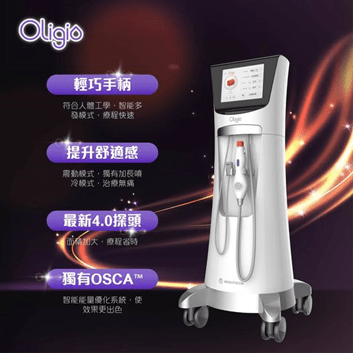 先講下喺香港比較新嘅Oligio,台灣個邊係搵咗小S做代言人,佢原理係透過單極射頻RF科技,用立體加熱原理將真皮層加熱,可以從肌底刺激膠原蛋白新生,好有效令肌膚持續新生膠原,回復彈力緊緻,有提升輪廓、緊膚、去紋效果。